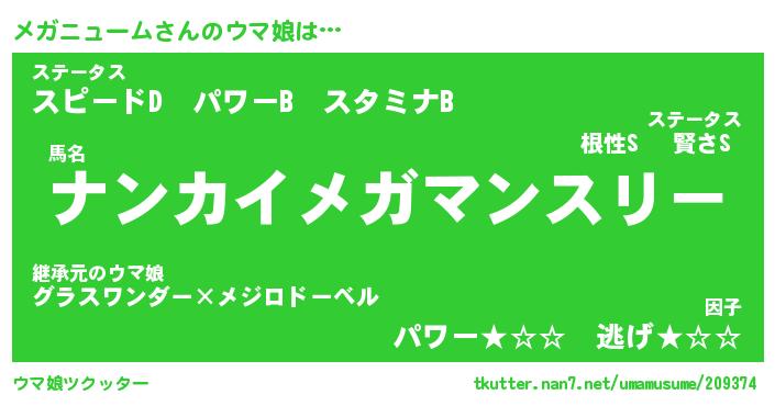 | 男性向けラノベタイトル風あだ名 | 『メガニュームの憂鬱』 |