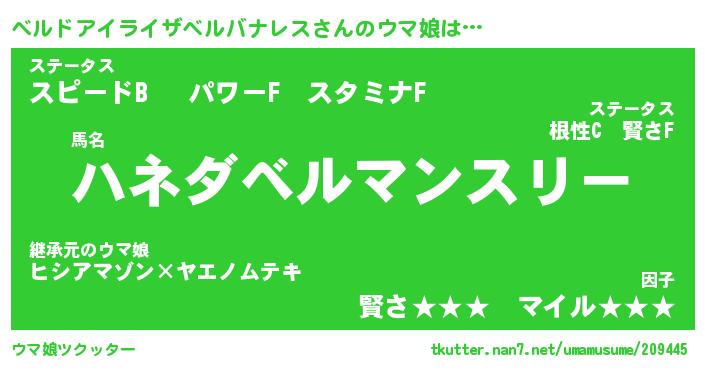 | 伝説のあだ名 | 『封印されし傭兵ベルドアイライザベルバナレス』 |