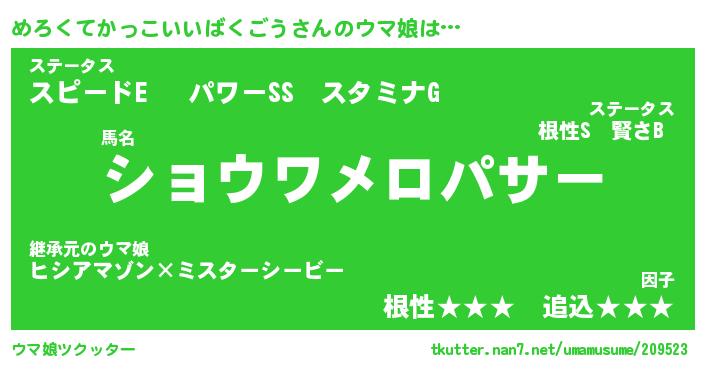 | 意味不明あだ名 | 『ペロリンめろくてかっこいいばくごう』 |