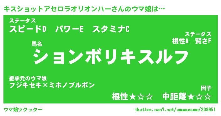 | 欧米人風あだ名 | 『マイケルキスショットアセロラオリオンハー』 |