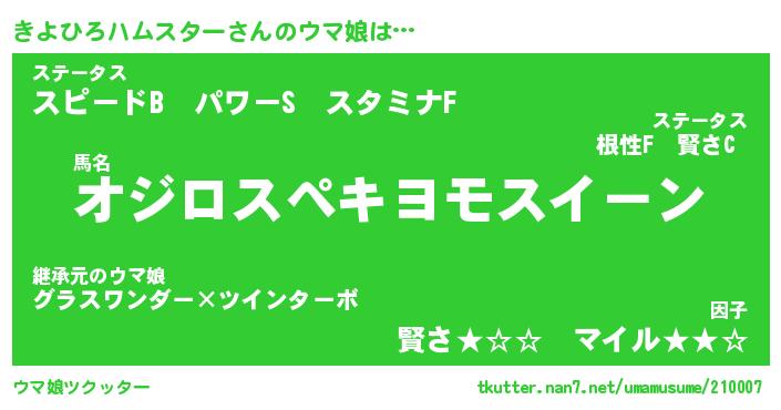 | 男性向けラノベタイトル風あだ名 | 『きよひろハムスターの憂鬱』 |