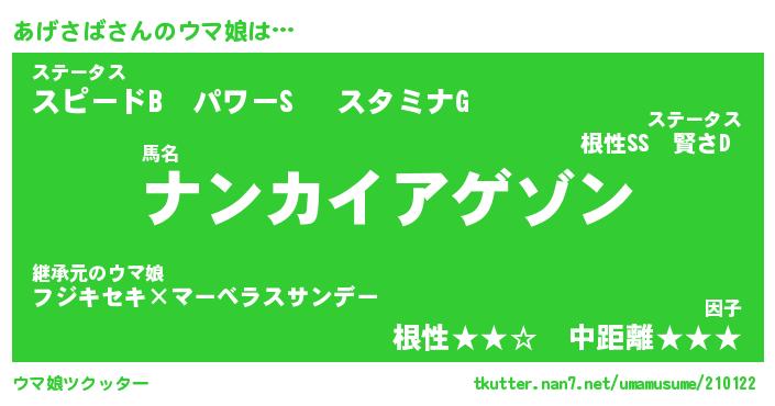 | ファンタジー風あだ名 | 『アゲフェル』『エターナルアゲサバー』 |