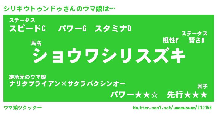 | 料理風あだ名 | 『節約★シリキウトゥンドゥと油揚げの玉子丼』 |
