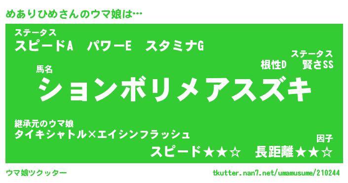| ヘコむあだ名 | 『めあにー』『牛乳』『めあ太郎』 |