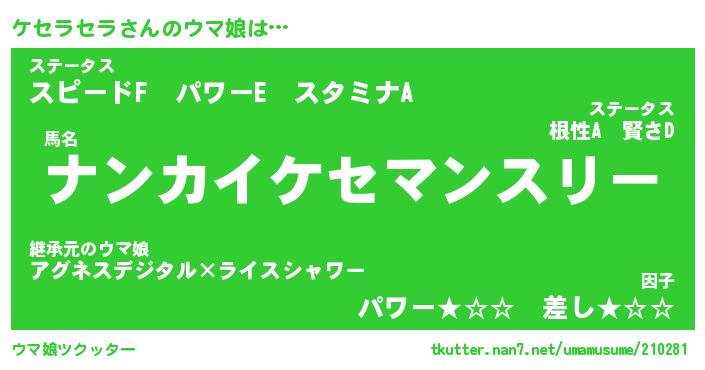 | ポケモン風あだ名 | 『ケセチュウ』『ケセラダネ』 |