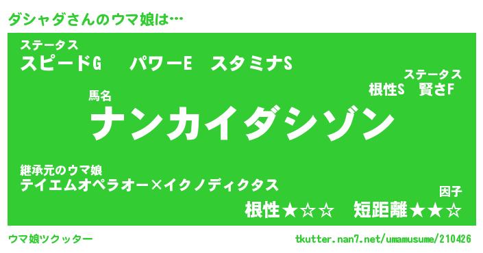 | ヒーロー風カッコイイあだ名 | 『スーパーダシャダ』『暗黒騎士ダシ』 |