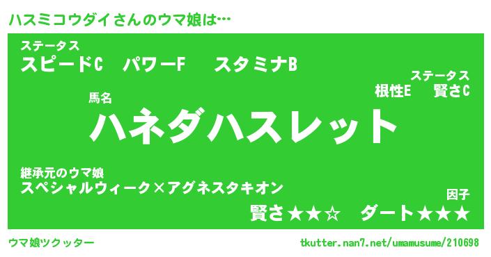| ポケモン風あだ名 | 『ハスチュウ』『ハスミダネ』 |