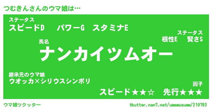 | ファンタジー風あだ名 | 『ツムフェル』『エターナルツムキンー』 |