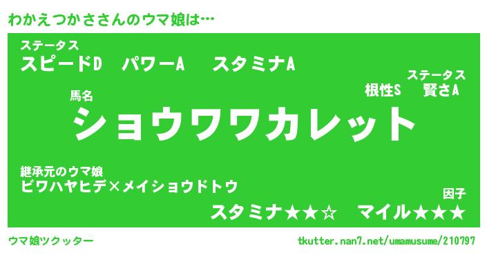 | ポケモン風あだ名 | 『ワカチュウ』『ワカエダネ』 |