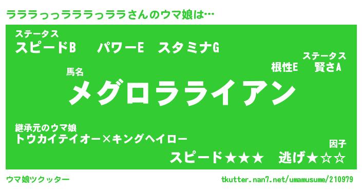 | 男性向けラノベタイトル風あだ名 | 『ラララっっラララっララの憂鬱』 |