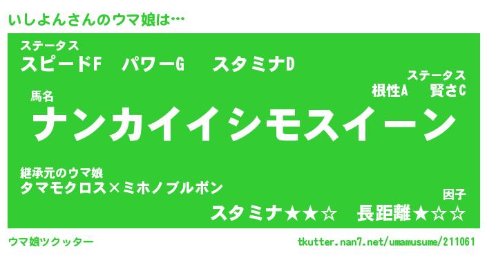 | ファンタジー風あだ名 | 『イシフェル』『エターナルイシヨンー』 |