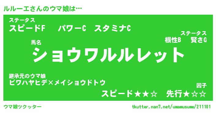 | 意味不明あだ名 | 『ペロリンルルーエ』『永久保存ルルーエ』 |