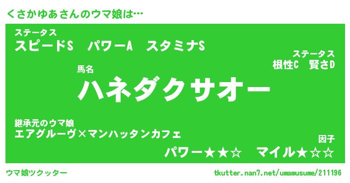 | 男性向けラノベタイトル風あだ名 | 『クサカユアアートオンライン』 |