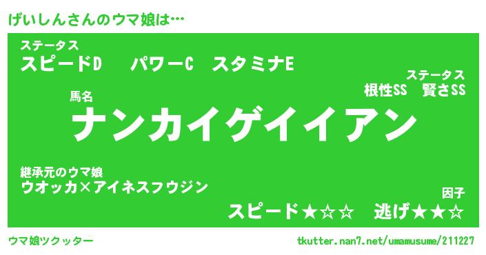 | 意味不明あだ名 | 『ペロリンげいしん』『永久保存げいしん』 |