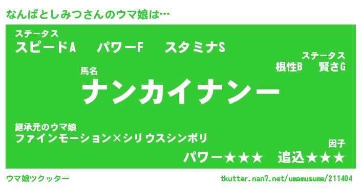 | ポケモン風あだ名 | 『ナンチュウ』『ナンバダネ』 |