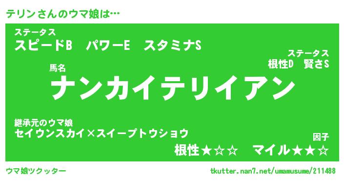 | 男性向けラノベタイトル風あだ名 | 『テリンの憂鬱』 |