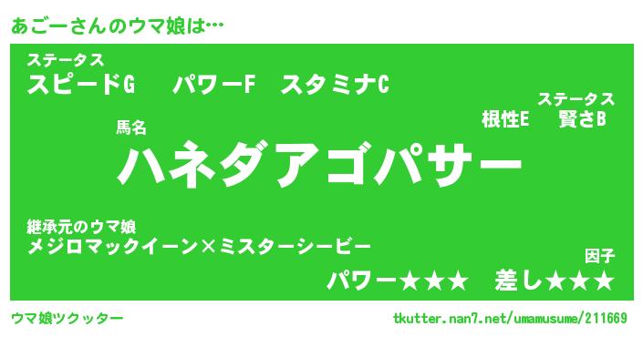 | 意味不明あだ名 | 『ペロリンあごー』『あごーフォーエバー』 |