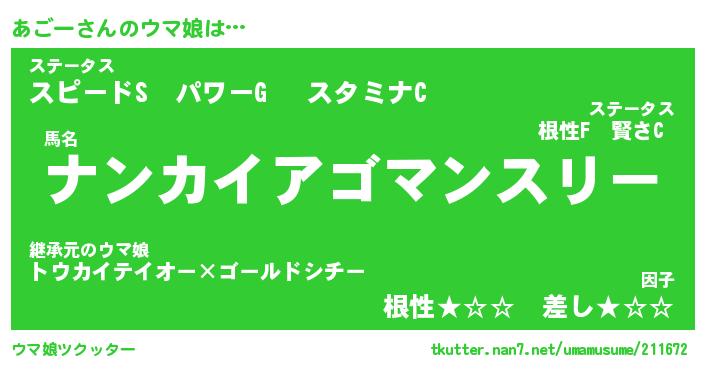 | ファンタジー風あだ名 | 『アゴフェル』『エターナルアゴーー』 |
