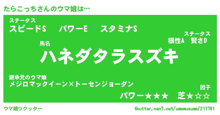 | ヒーロー風カッコイイあだ名 | 『スーパータラコッチ』『幻影騎士タラ』 |