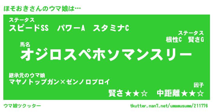 | 欧米人風あだ名 | 『マイケルほそおき』『ウサインほそおき』 |