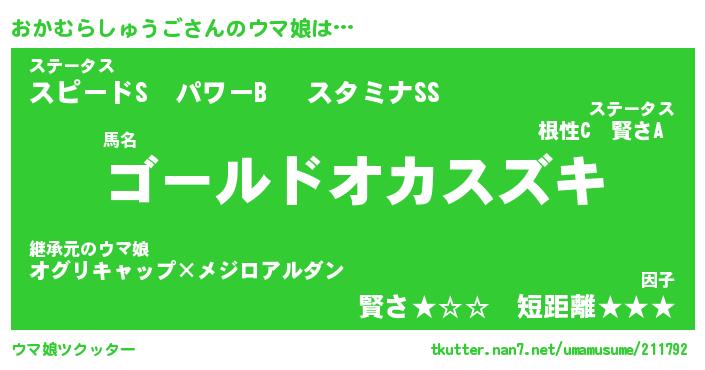 | ポケモン風あだ名 | 『オカチュウ』『オカムダネ』 |