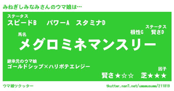 | 料理風あだ名 | 『ほっこり♪みねぎしみなみの味噌そぼろ煮』 |