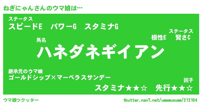 | ポケモン風あだ名 | 『ネギチュウ』『ネギニダネ』 |