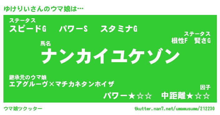 | ファンタジー風あだ名 | 『ユケフェル』『エターナルユケリイー』 |