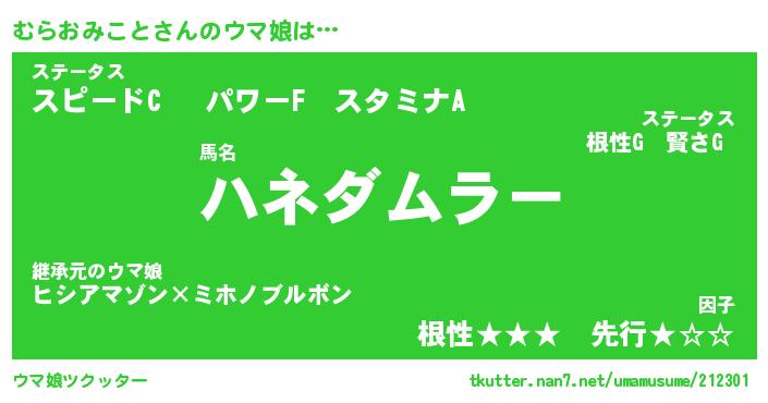 | 自動車の名前っぽいあだ名 | 『ムラティマ』『ムクア』『ヴィッム』 |