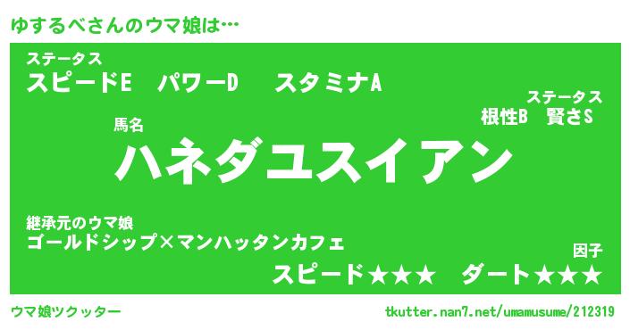 | 自動車の名前っぽいあだ名 | 『ユスティマ』『ユスラー』『デミユ』 |