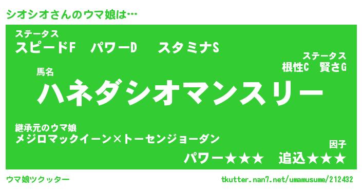 | 意味不明あだ名 | 『ペロリンシオシオ』『永久保存シオシオ』 |