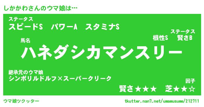 | ヒーロー風カッコイイあだ名 | 『スーパーシカカワ』『暗黒騎士シカ』 |
