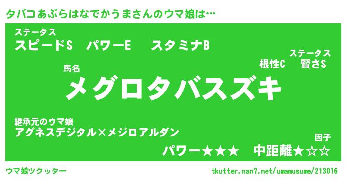 | 料理風あだ名 | 『ほっこり♪タバコあぶらはなでかうまの味噌そぼろ煮』 |
