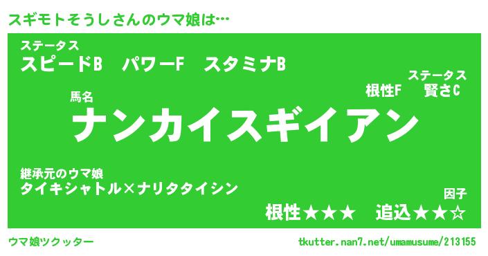 | 2回繰り返すあだ名 | 『スギスギ』『ススギギ』『ぬらぬら』 |