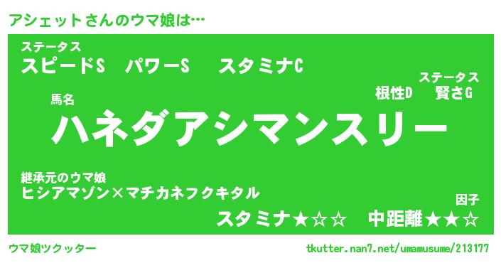 | 伝説のあだ名 | 『封印されしスナイパーアシェット』 |
