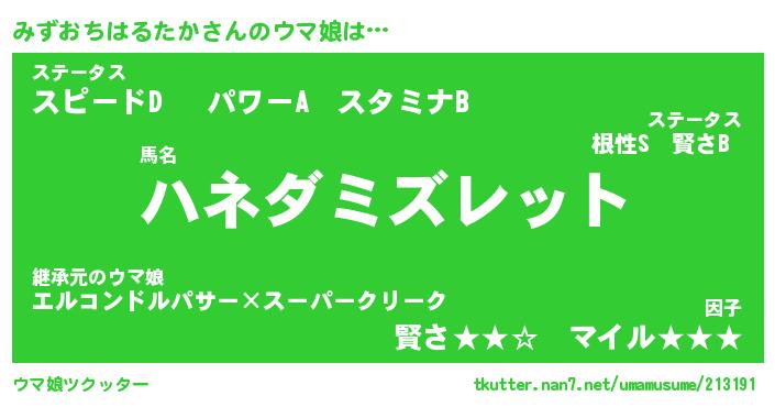 | ポケモン風あだ名 | 『ミズチュウ』『ミズオダネ』 |