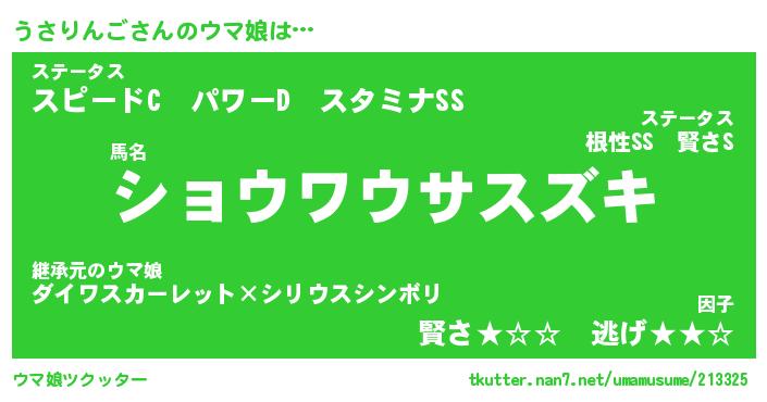 | ヒーロー風カッコイイあだ名 | 『スーパーウサリンゴ』『幻影騎士ウサ』 |