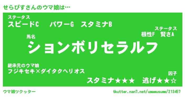 | 意味不明あだ名 | 『ペロリンせらぴす』『永久保存せらぴす』 |