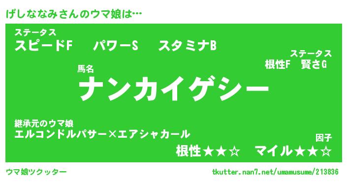 | ポケモン風あだ名 | 『ゲシチュウ』『ゲシナダネ』 |