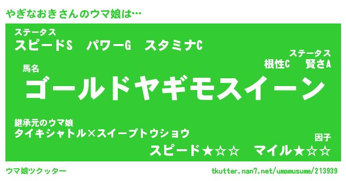 | ポケモン風あだ名 | 『ヤギチュウ』『ヤギナダネ』 |