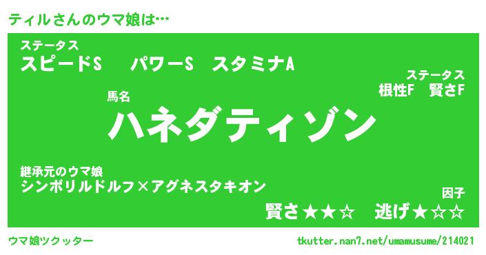 | ポケモン風あだ名 | 『ティチュウ』『ティルダネ』 |