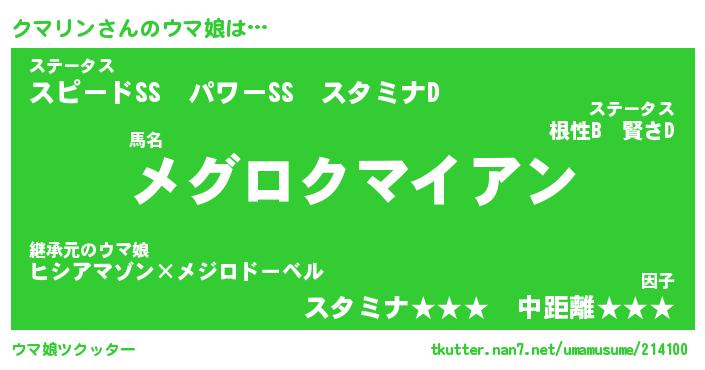 | 2回繰り返すあだ名 | 『クマクマ』『ククママ』『きんきん』 |