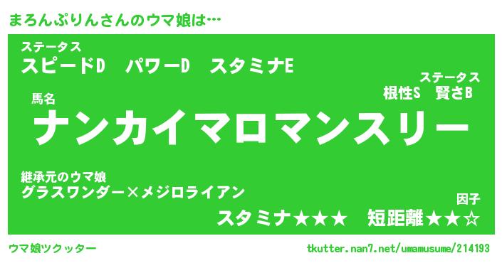 | 欧米人風あだ名 | 『マイケルまろんぷりん』 |