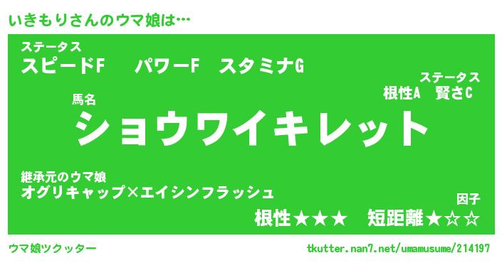 | 意味不明あだ名 | 『ペロリンいきもり』『永久保存いきもり』 |