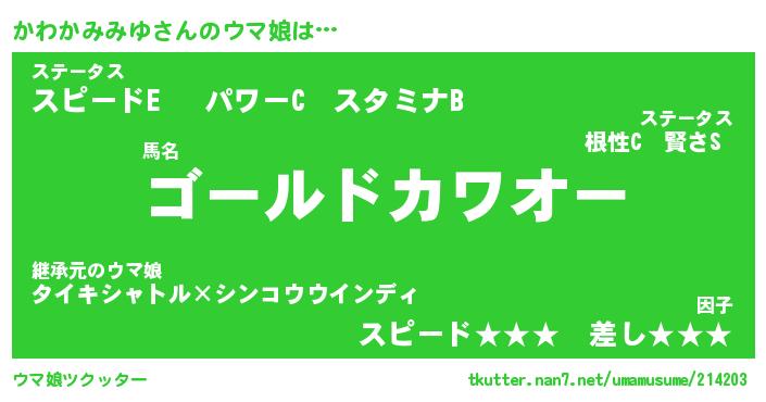 | ポケモン風あだ名 | 『カワチュウ』『カワカダネ』 |