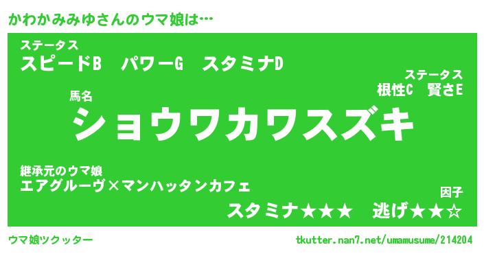 | ヒーロー風カッコイイあだ名 | 『スーパーカワカミミユ』『魔戒騎士カワ』 |