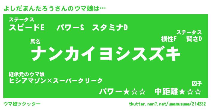| 男性向けラノベタイトル風あだ名 | 『よしだまんたろうの憂鬱』 |
