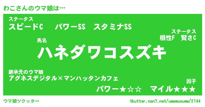 | 意味不明あだ名 | 『ペロリンわこ』『わこフォーエバー』 |