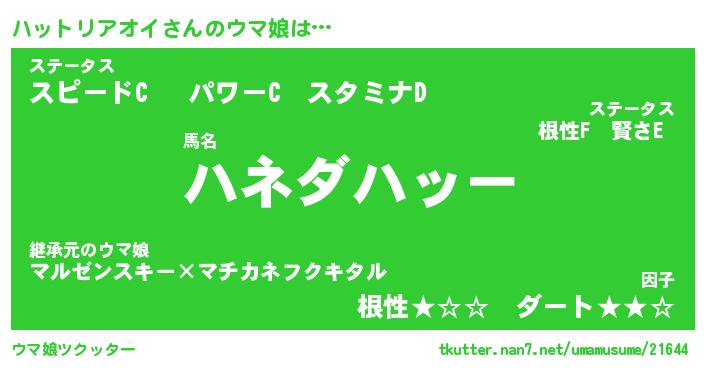 | ポケモン風あだ名 | 『ハッチュウ』『ハットダネ』 |