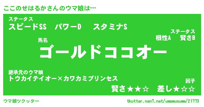 | ポケモン風あだ名 | 『ココチュウ』『ココノダネ』 |